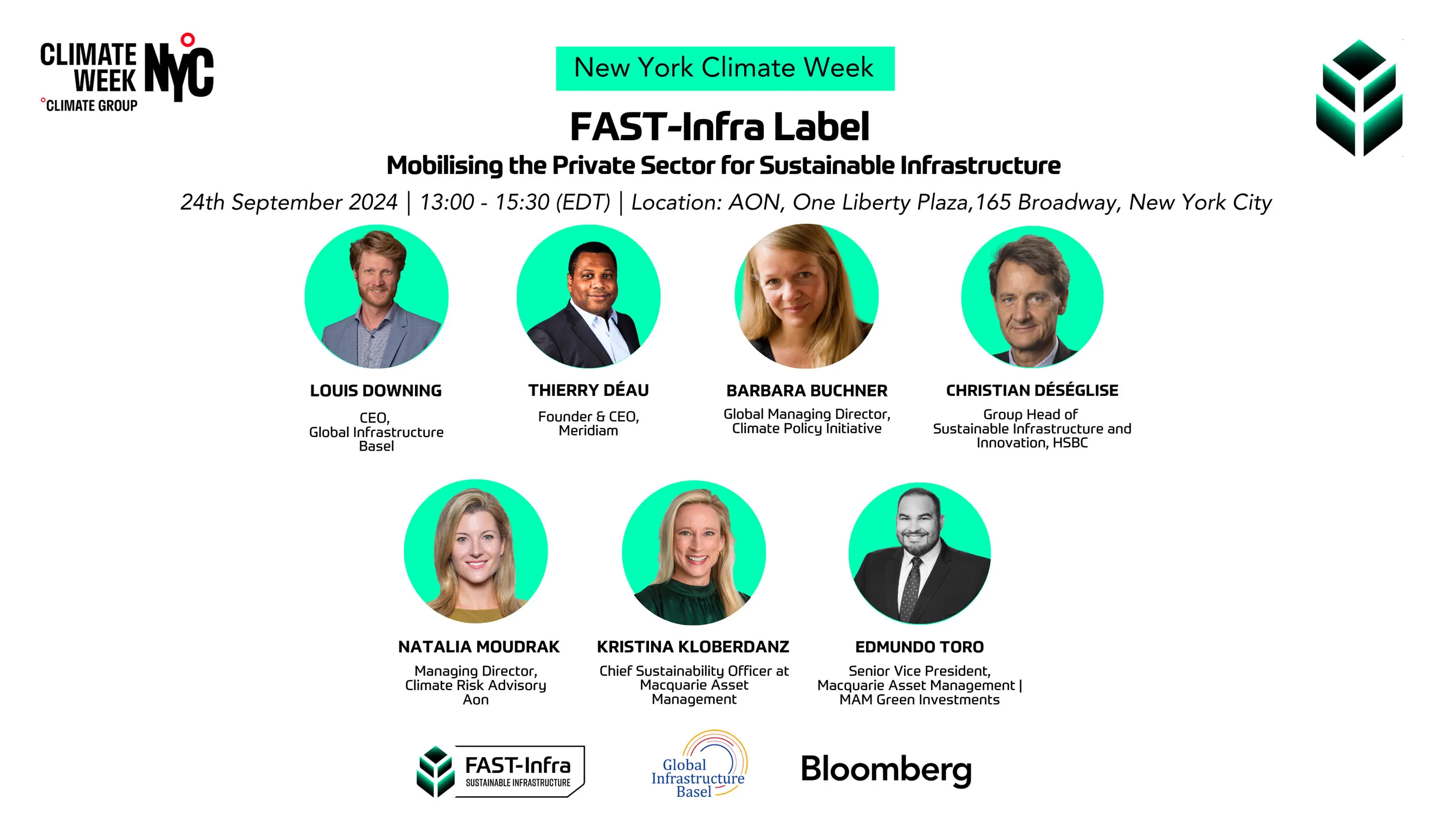 This event is a unique opportunity for stakeholders to collaborate on advancing sustainable infrastructure and to leverage the FAST-Infra Label as a tool for enhancing investment confidence. Join us on September 24, 2024, from 1:00 PM to 3:30 PM EDT at AON, One Liberty Plaza, 165 Broadway, New York, NY, for this critical discussion.